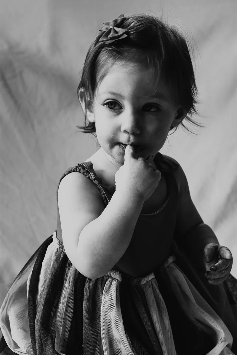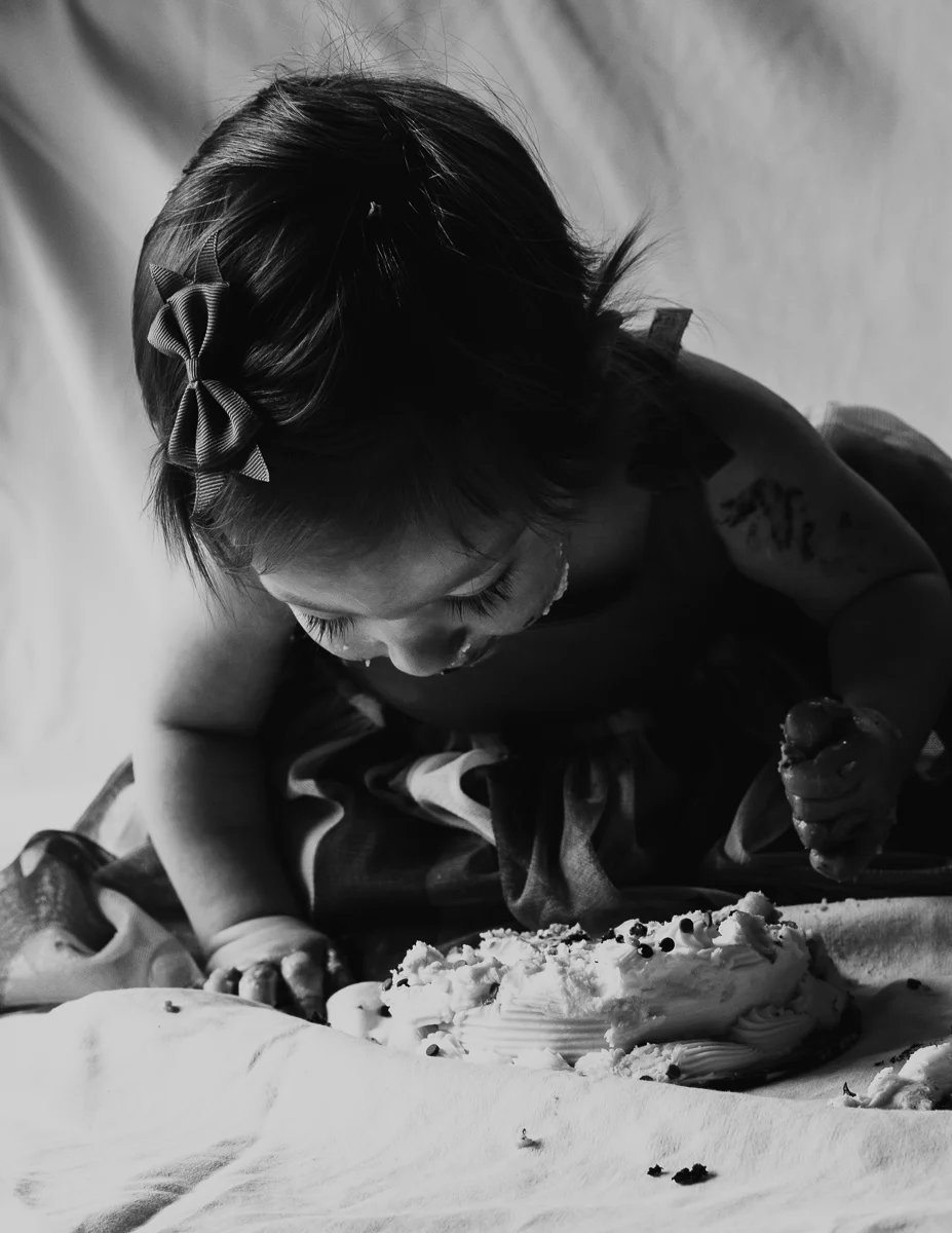 You can definitely see the personalities of Ady and Huxley displayed in these pictures. Ady did not hesitate at all to poke and inspect her cake. Of course she did not care to smash it; her only interest was getting frosting on her fingers and licking it off. Huxley was more hesitant at first (and he could care less about eating it). Once he realized he could squish it and smash it and make a mess, he was throwing handfuls of cake all over the room. I definitely took some of that chocolate cake home with me… on my clothes that is.