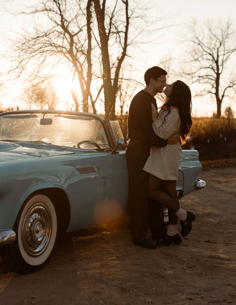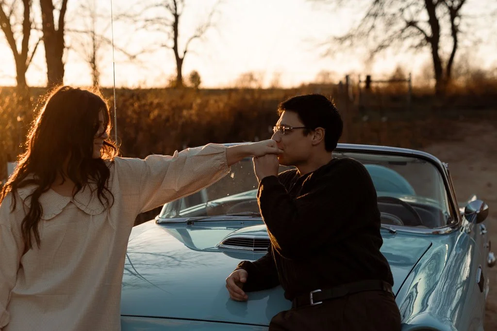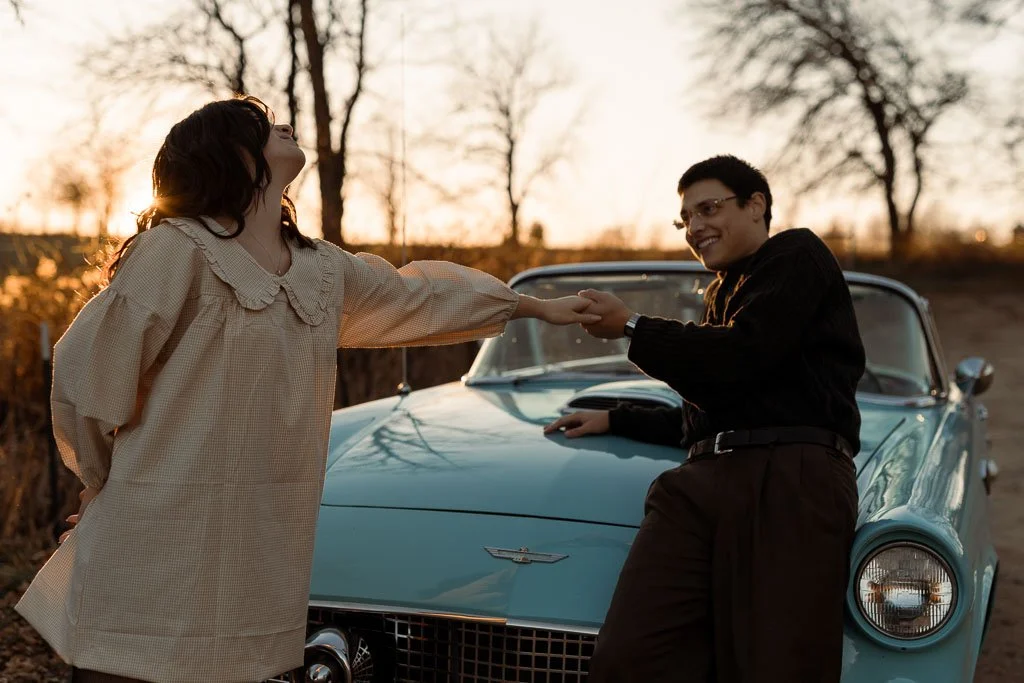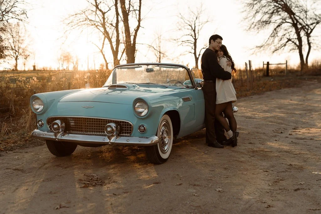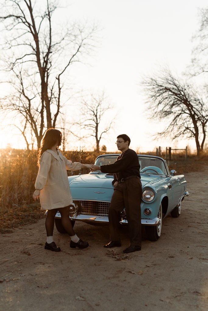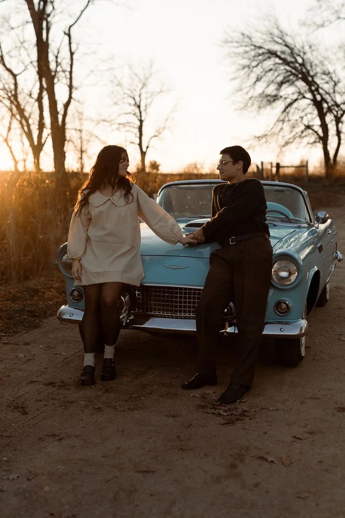 Aaron and Desirae and a 1956 Thunderbird. What a dreamy sunset shoot this was. I had so much fun getting creative for this one. And bless Desirae’s sweet parents who brought their classic car all the way out to this spot in the middle of nowhere for these photos. We made sure they got their own cute photos with the car (see the images at the end).
