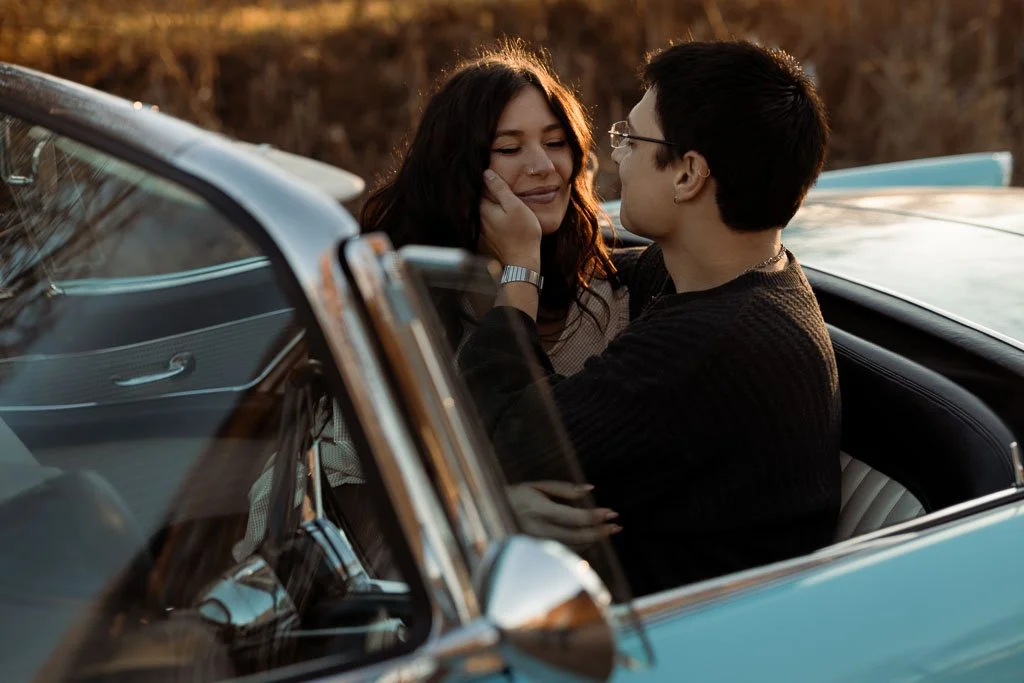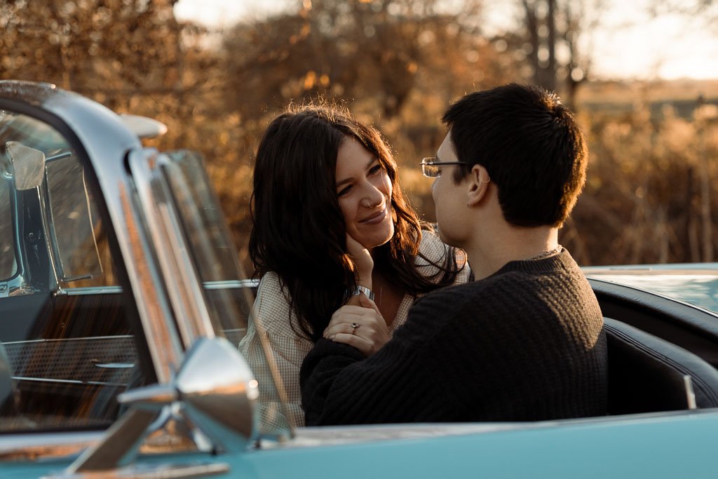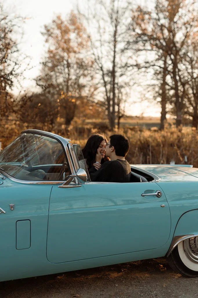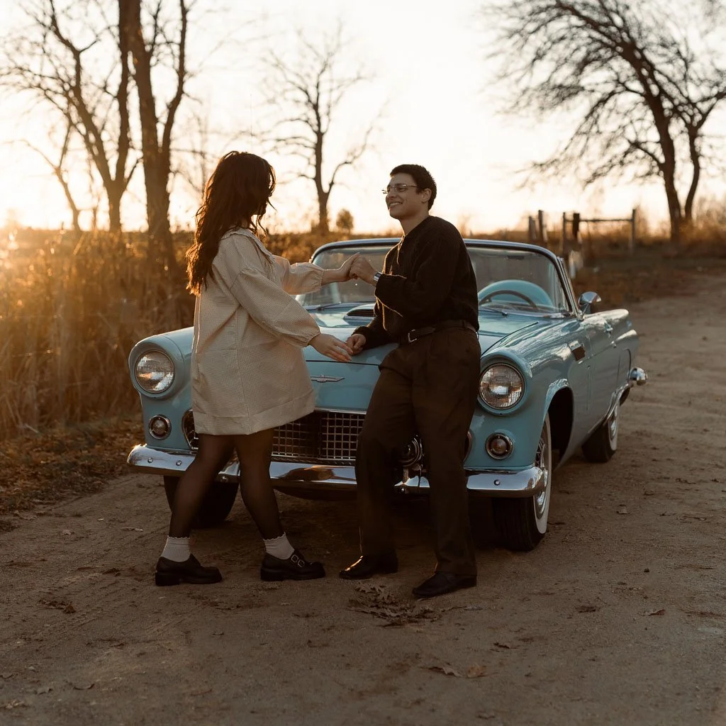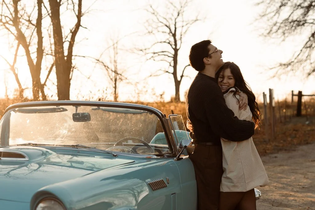 Aaron and Desirae and a 1956 Thunderbird. What a dreamy sunset shoot this was. I had so much fun getting creative for this one. And bless Desirae’s sweet parents who brought their classic car all the way out to this spot in the middle of nowhere for these photos. We made sure they got their own cute photos with the car (see the images at the end).